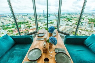 Отзыв. Приезжала в командировку. По совету коллег решила посетить это место, хотя предполагала, что будут заоблачные цены, ведь ресторан при отеле 5* плюс вид на город с 37 этажа. Пришла без бронирования в 6 часов вечера, в итоге повезло и я оказалась за столиком у окна! И цены приятно удивили! Вполне приемлемые для такого места. Приятная официантка быстро принесла заказ, да и с ожиданием проблем не было. Ещё нашли для моего телефона зарядку. В общем обслужили профессионально, с заботой. Было вкусно и классно. Спасибо! Все отзывы29
