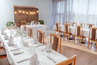 Банкетные залы вместимостью до 40 и 100 человек.