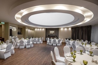 Вместимость зала от 50 до 300 мест. Средний счёт от 2500 руб. с человека.